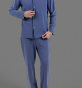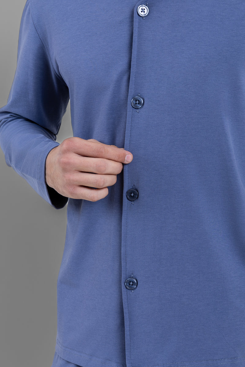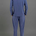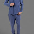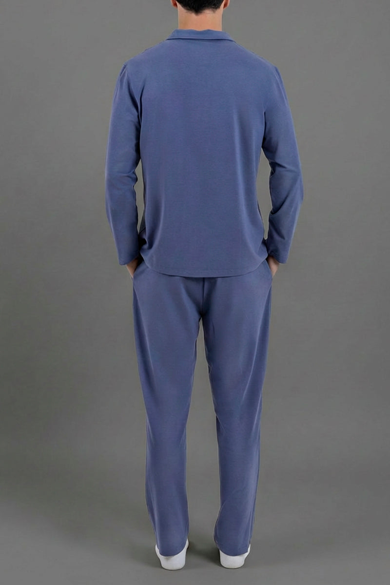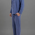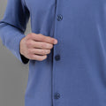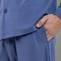 طقم مريح بقميص بأزرار و بنطلون بجيوب جانبية - ازرق