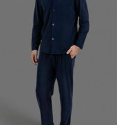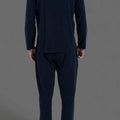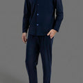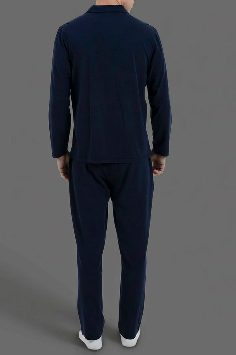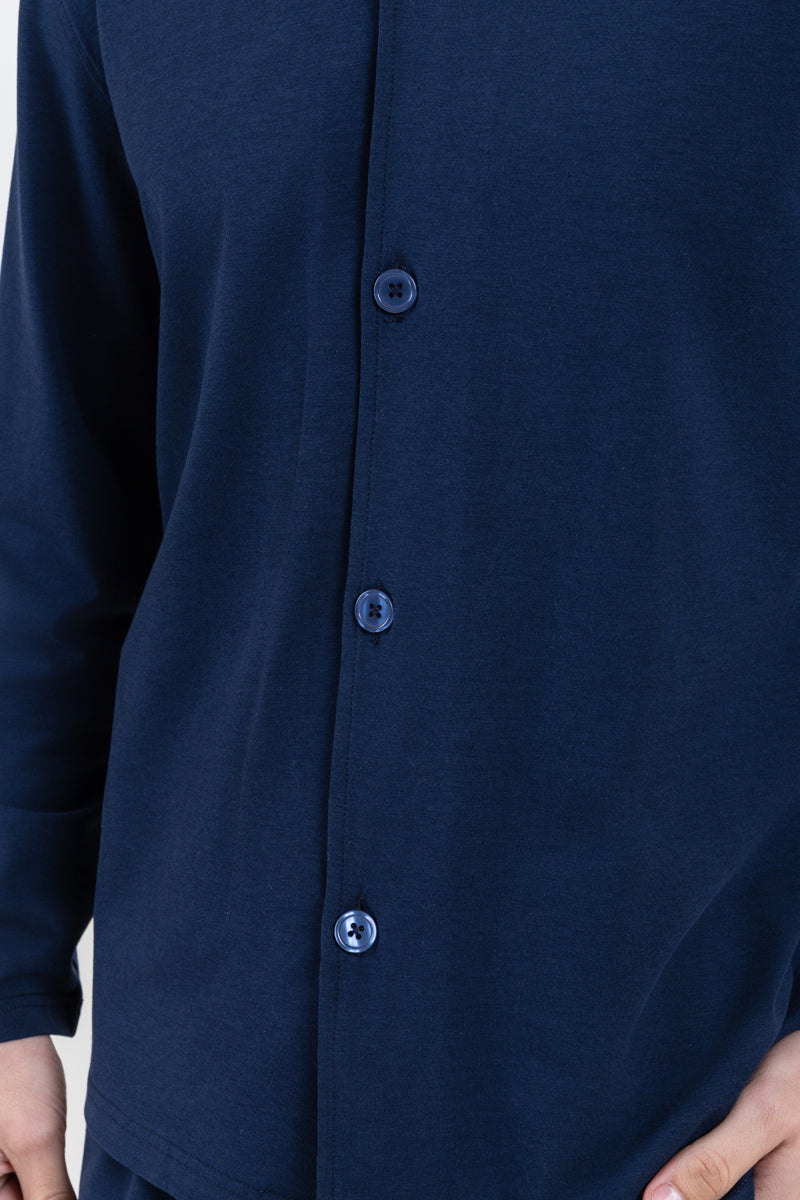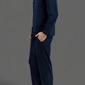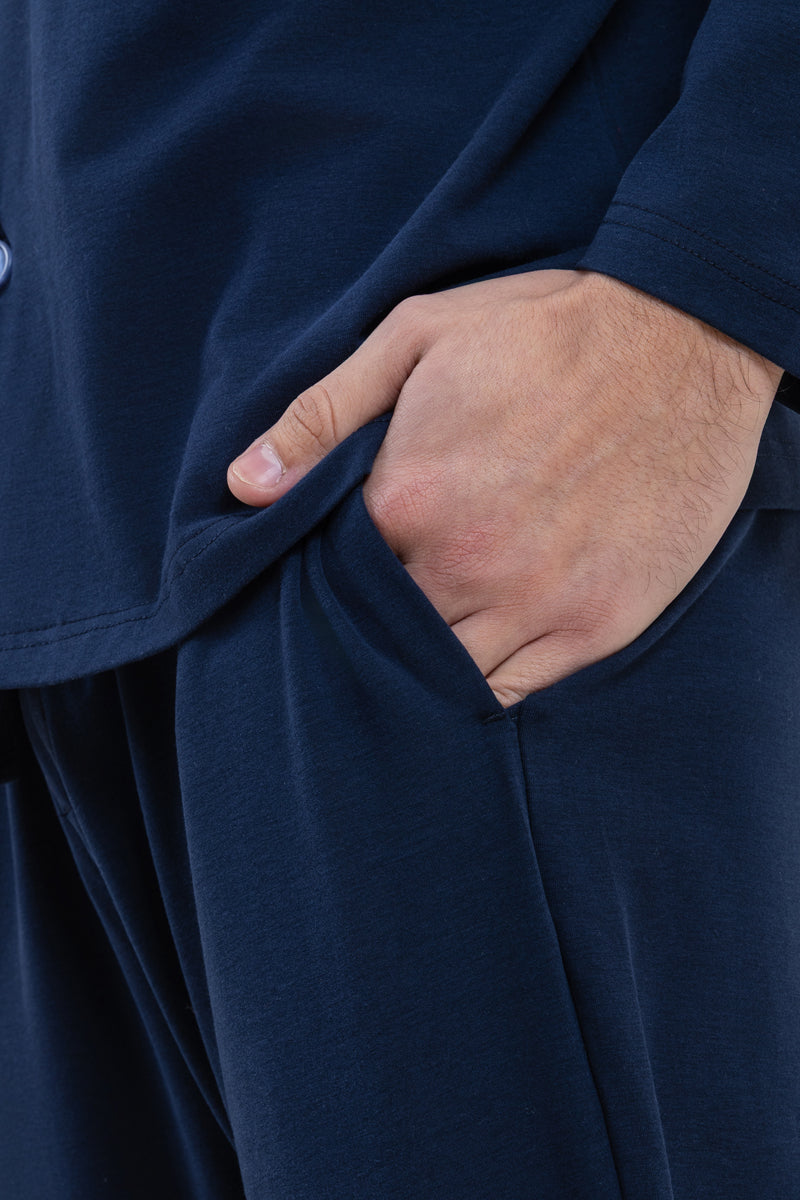 طقم مريح بقميص بأزرار و بنطلون بجيوب جانبية - كحلي