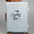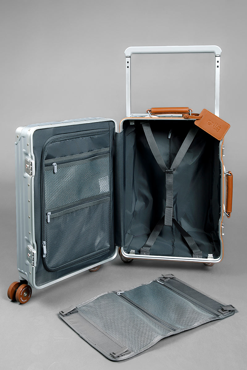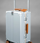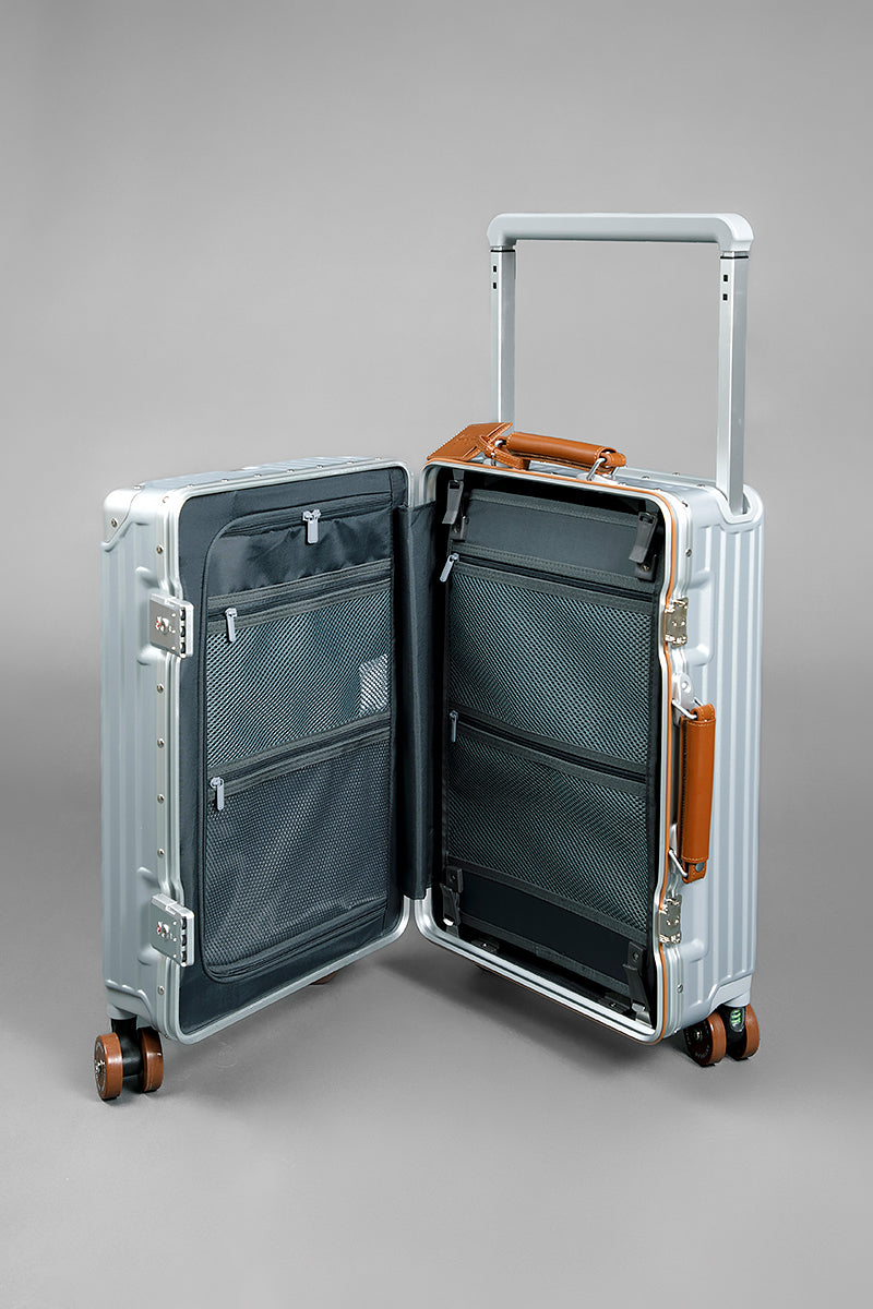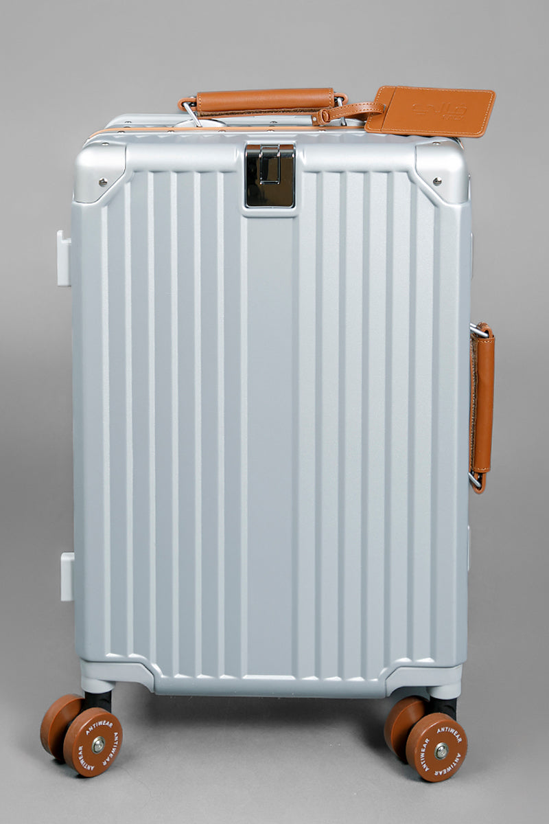 مصنوعة من مادة البولي كربون عالية المتانة مع إطار من الألمنيوم يمنحها هيكلًا قويًا يحافظ على مقتنياتك أثناء التنقل. يتميز تصميمها الخارجي بخطوط طولية عصرية مع تفاصيل جلدية بلون بني تضيف لمسة راقية ومتوازنة.