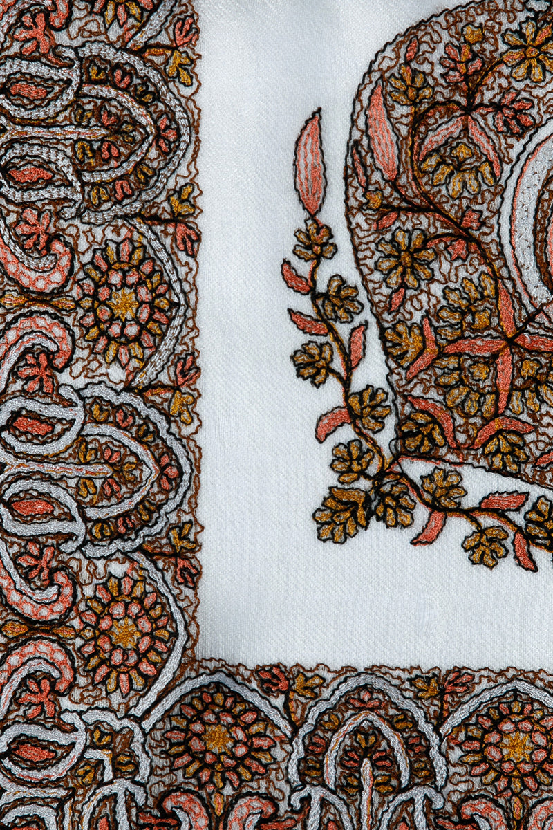 شال كشمير باشمينا رجالي مطرّز - نقشة نحاسيّة تراثية
